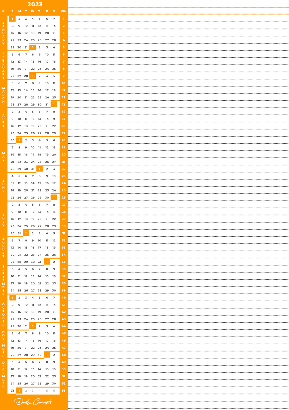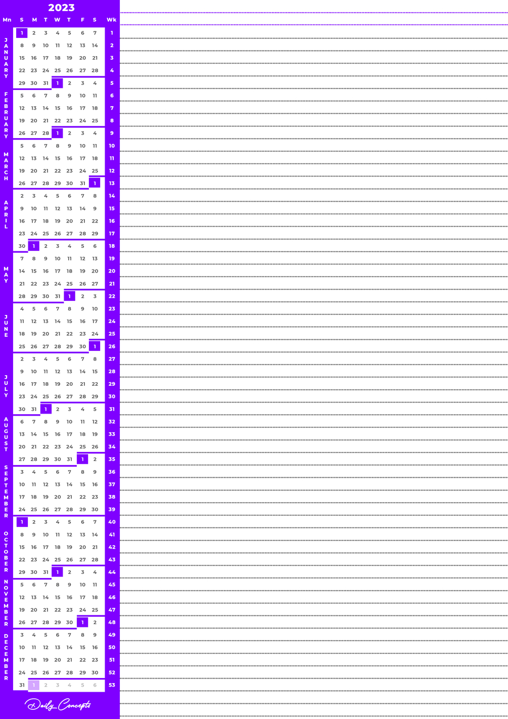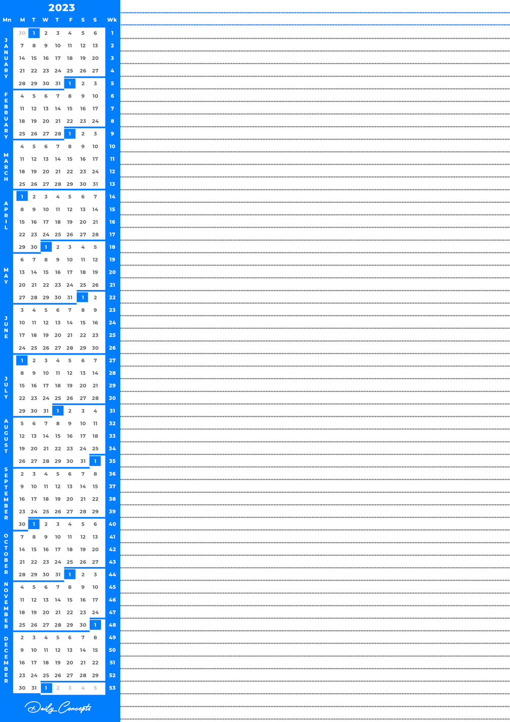 "Are you tired of carrying around your physical planner, Heavy Diary or constantly having to look up the wall, phone or desktop calendar while searching for a pen and paper to jot down your thoughts and ideas? Our printable A4 2023 planner is the perfect solution for you! With a comprehensive layout that provides a bird's eye view of the entire year and its component months, weeks, and days, you'll never miss an important event or deadline again.